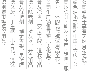 公司秉承“質(zhì)量為本、我們要做的是唯一、而不是第一”的經(jīng)營服務理念,堅持以誠信為先、服務至上、創(chuàng)新發(fā)展為立業(yè)之本,以鄭重的承諾和完善的服務為信譽保證,不斷專研、開發(fā)、生產(chǎn)出盡善盡美的高科技殯儀產(chǎn)品...